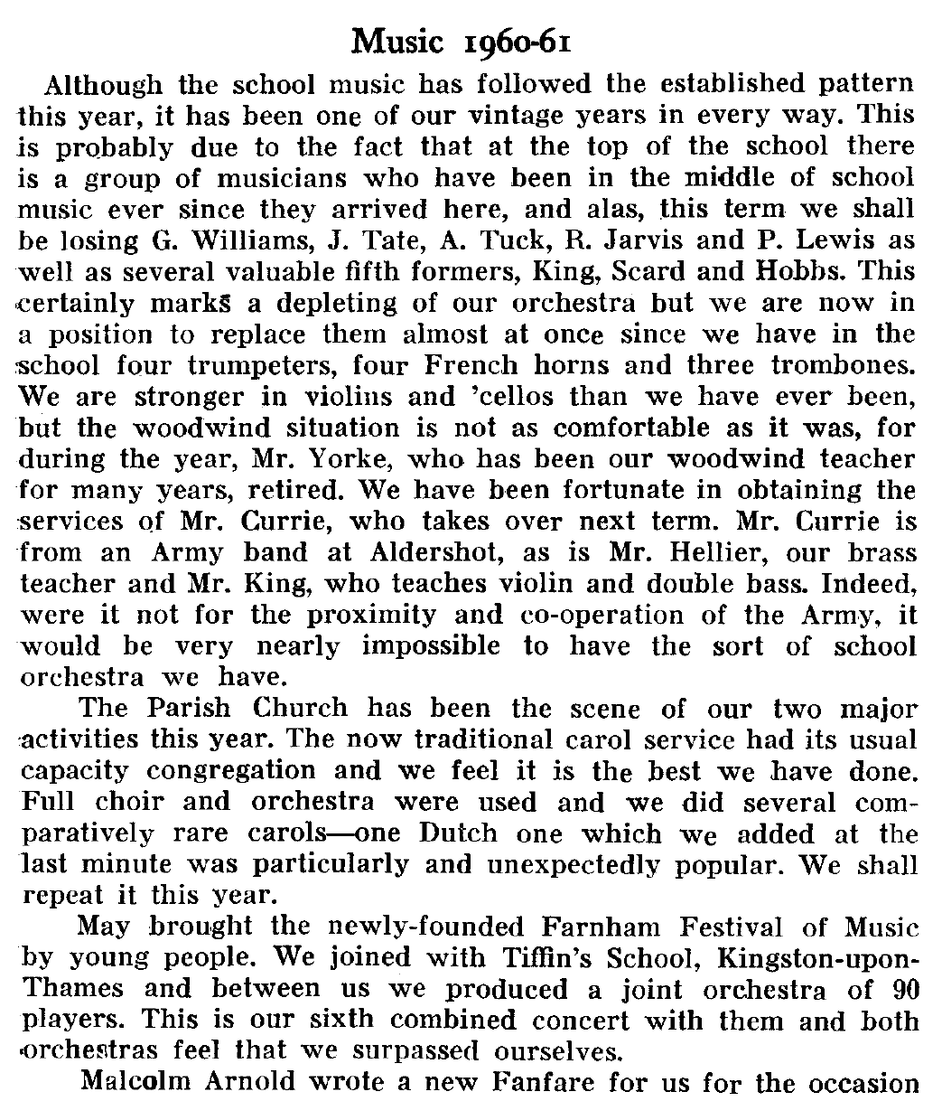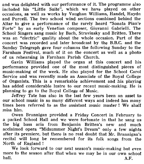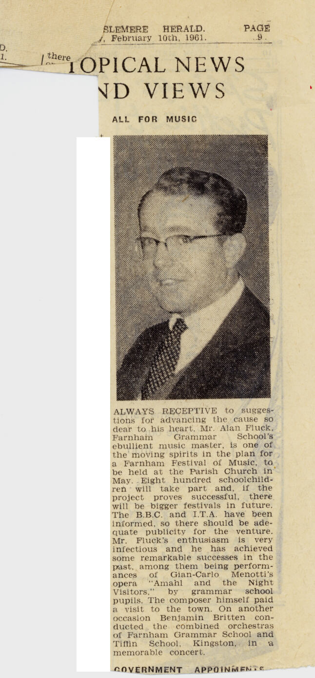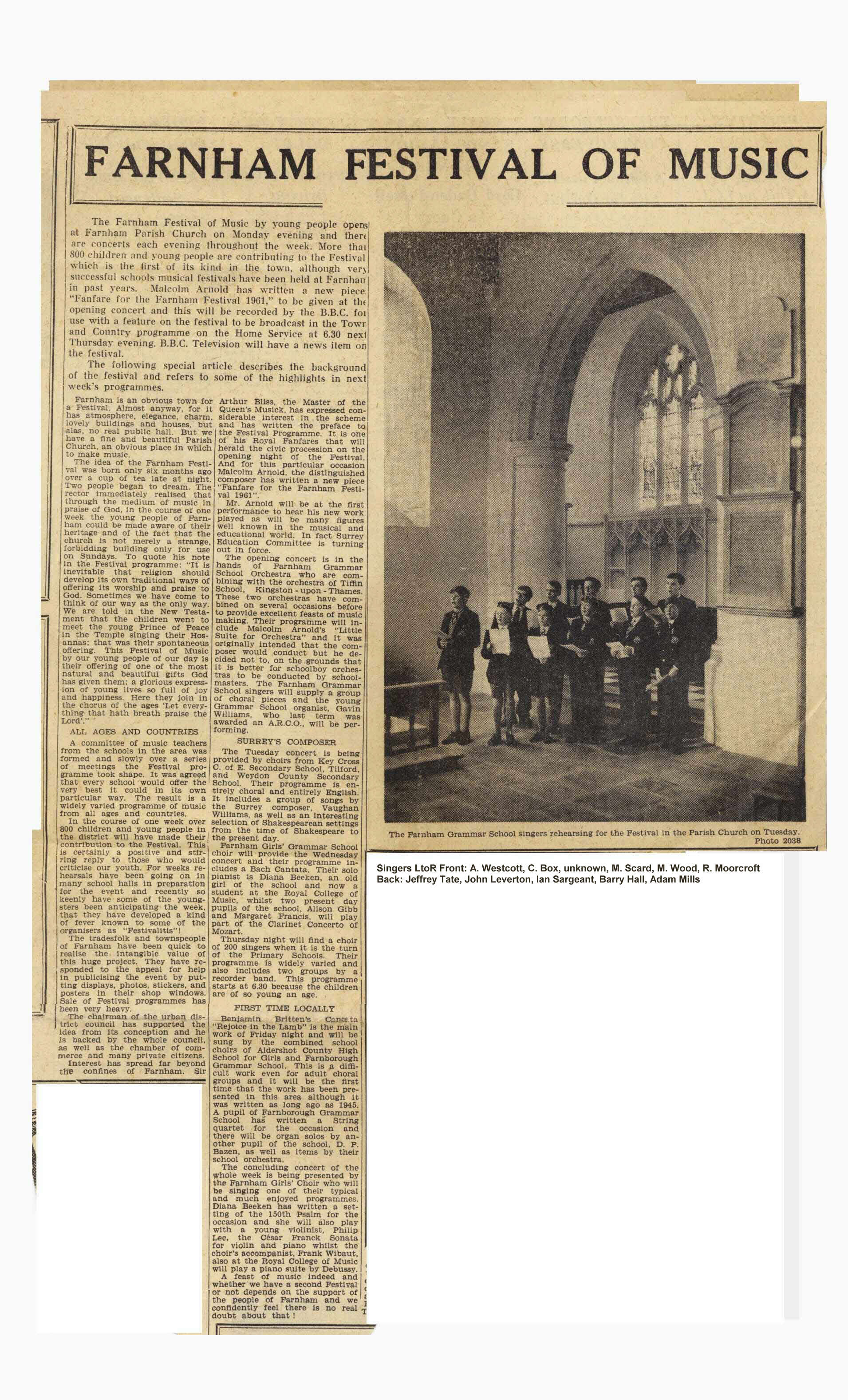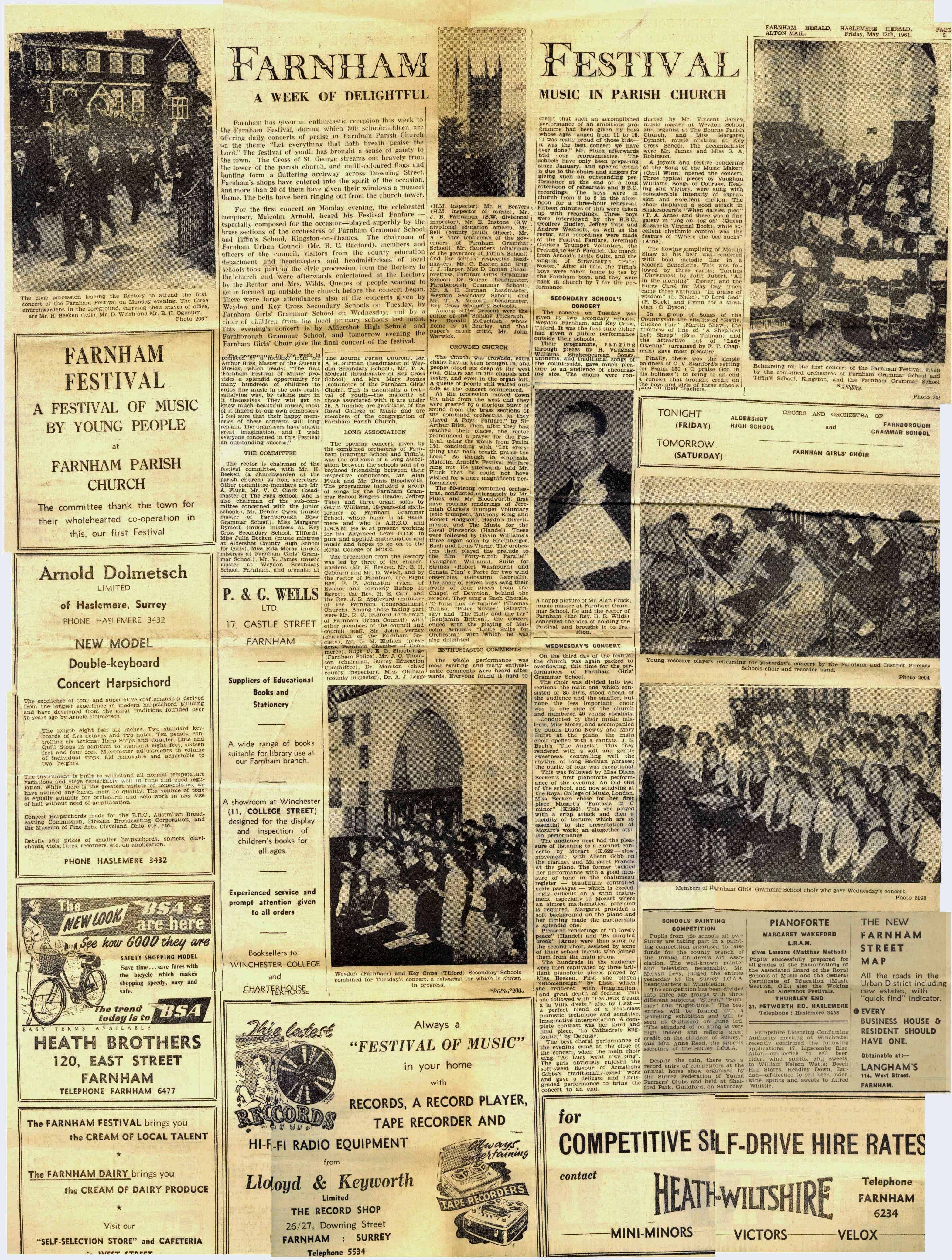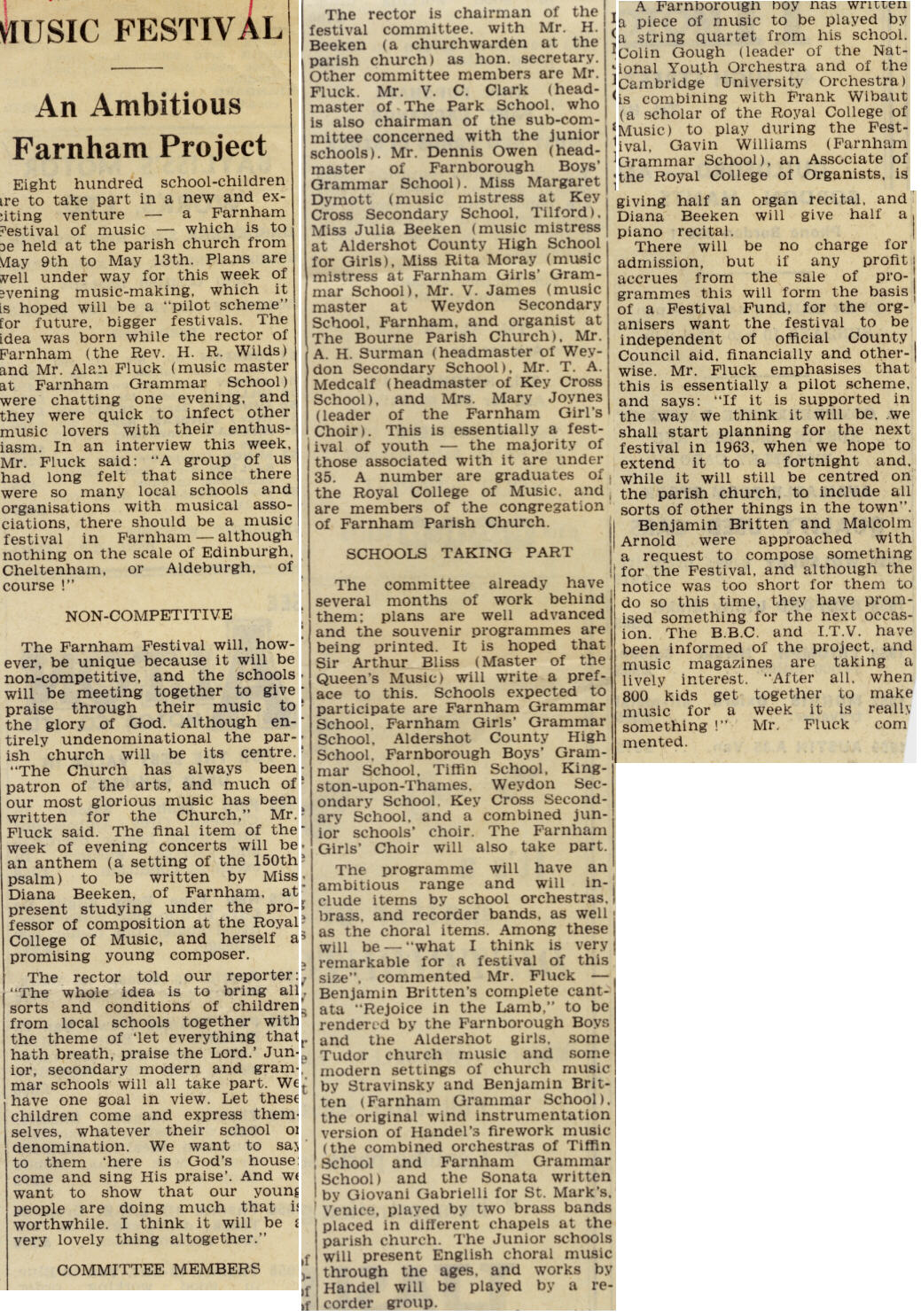 festival for Farnham in 1960 with the novel idea of commissioned music